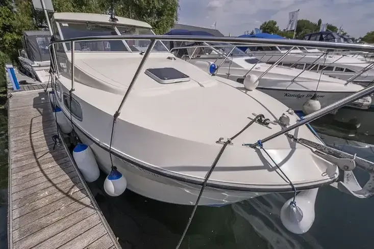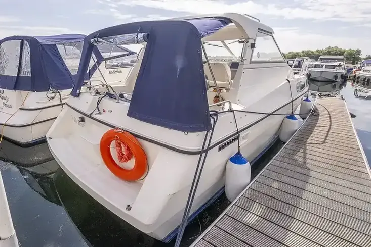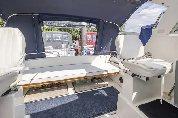 The Idle Hour is a spacious, and well-maintained Shadow 26 cabin cruiser, that is designed for comfortable river cruising. The boat has been well maintained by the current owner, and recent works include a new canopy fitted in 2019. The cockpit is designed for socialising, with plenty of space for guests, including a large cushioned seat at the stern.