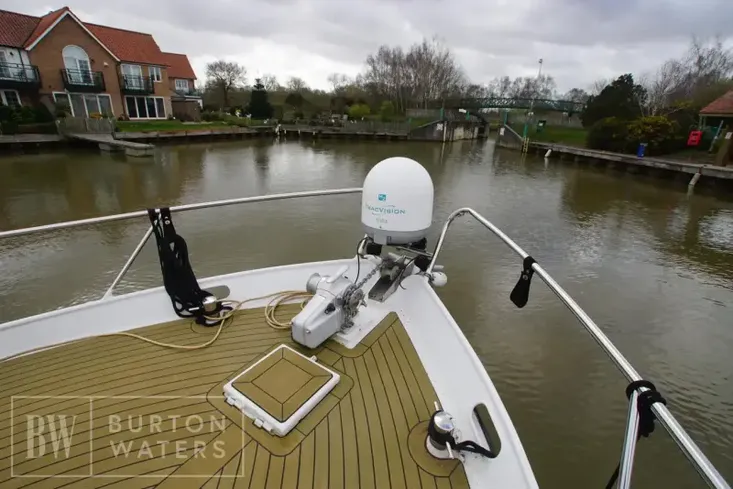 The vessel is fitted with bow & stern thruster, generator, Heating in the vessel and also the cockpit area, Hinged arch and folding screens, Separate shower and head and Satellite TV’s in saloon, Cockpit and mater cabin.