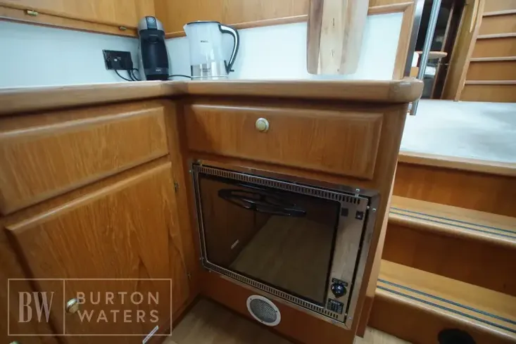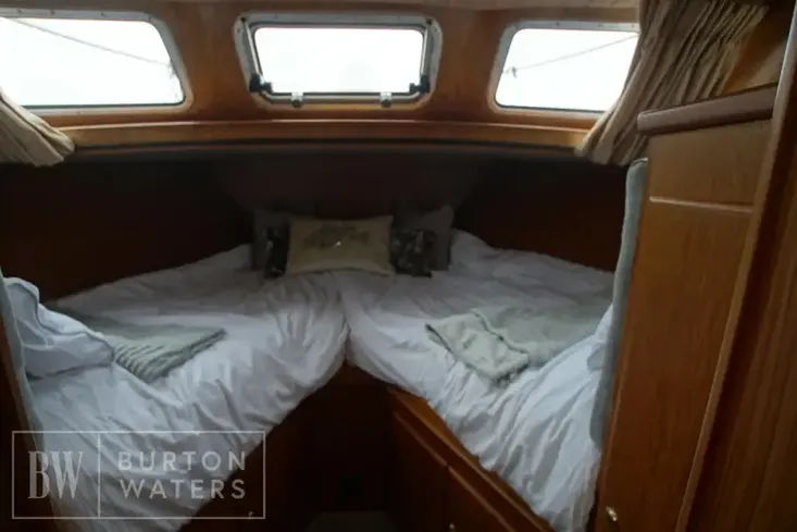 The vessel has seven berths with a aft master cabin with a double island bed. The layout also offers a forward cabin, Dinette area, galley, and large saloon area.